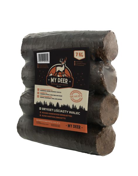 Firma oferuje wysokiej jakości brykiet walec z trociny liściastej, pakowany w folię termokurczliwą po 7 kg.
